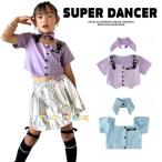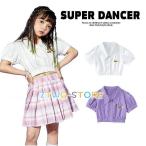 シャツ キッズダンス衣装 トップス K-POP 韓国 バルーン袖 半袖シャツ ダンス衣装 キッズ ガールズ 白 紫