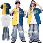 キッズダンス衣装 ヒップホップ HIPHOP k-pop衣装 橙シャツ パンツ 子供 緑シャツ 男の子 女の子 ガールズ トップス カーゴパンツ かっこいい