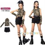 迷彩 女の子 子供服 ヒップホップ ダンス衣装 迷彩トップス ダンス衣装 短パンツ アームカバー キッズ 無袖 女の子 k-pop 演出 原宿系 カッコイイ おしゃれ