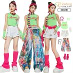 女の子 k-pop ダンス衣装 セットアップ キッズ 蛍光色 緑 子供服 ヒップホップ へそ出し タンクトップ カラフル ロンパン ダイダイ柄 白 短パン 韓国風 ダンス衣
