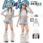 ステージ 衣装 キッズ ダンス 派手 ガールズ セットアップ ヒップ ホップ HIPHOP k-pop 韓国 Y2Kファッション 発表会 個性的 ファー 長袖トップス へそ出し ショ