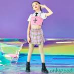 キッズ ダンス衣装 ジャズダンス ガールズ 女の子 男の子 ヒップホップ 韓国風 チェック柄 スカート チアガール チア セットアップ 練習着