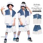 キッズダンス 子供服 上下セット デニム 韓国ファッション 学生 子供ダンス 男の子 女の子 K-POP ハーフパンツ デニムベスト 夏 ヒップホップ ダンス衣装 hiphop