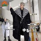 韓国 ファッション 中綿 コート 中綿ダウン チェッカーフラッグ柄 ブロックチェック柄 温感 アウター 男女 シェア服 メンズ レディース ユニセックス 秋 秋冬