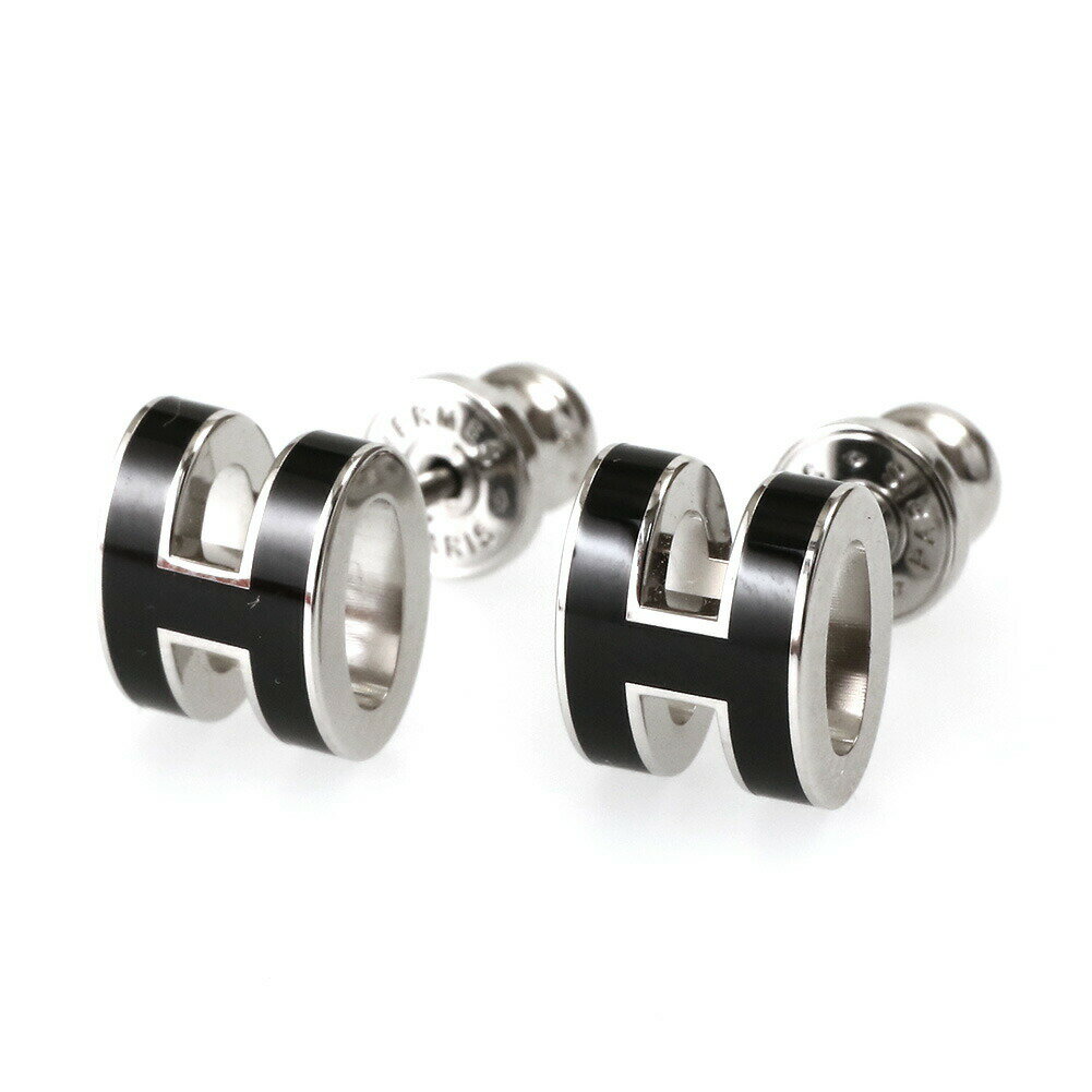 \10%OFFクーポン★21日10時迄/ エルメス ピアス レディース ブランド HERMES MINI POP H シルバー-ブラック アクセサリー