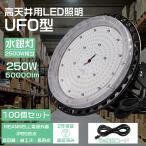100個セット 高天井用LED照明 250W 2500W相当 50000lm IP65防水 UFO型 LED投光器 作業灯 水銀灯代替 吊下げタイプ 看板照明 丸型 LEDハイベイライト 広角 PSE