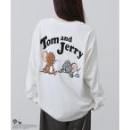 tシャツ 「TOM&JERRY 」 キャラクター 刺繍 バックプリント オーバーサイズ ロングスリーブTシャツ メンズ レディース
