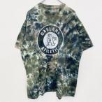 古着 used 半袖ロゴプリントTシャツ アスレチックス プロ野球 ATH MLB タイダイ グリーン XLサイズ