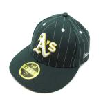 ニューエラ NEW ERA LP 59FIFTY MLB Pinstripe オークランド アスレチックス ストライプ キャップ 帽子 ダークグリーン 7 1/4 57.7cm 美品