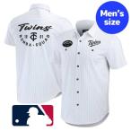 MLB公式 メンズ 襟付きシャツ 半袖シャツ トップス ミネソタ・ツインズ Minnesota Twins Pin Stripe Button-Up Shirt