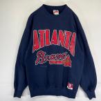 古着 90's/90年代 ナツメグミルズ Nutmeg Mills USA製 スウェット クルーネック MLBブレーブス トレーナー L ネイビー系 メンズ