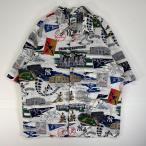 古着 レインスプーナー REYNSPOONER 半袖シャツ コラボ MLB ヤンキース アロハ L ホワイト 総柄 メンズ