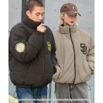 ダウンジャケット ダウン MLB/メジャーリーグベースボール 別注 ワッペン刺繍 2WAYリバーシブル オーバーサイズスタンドパディングジャケット