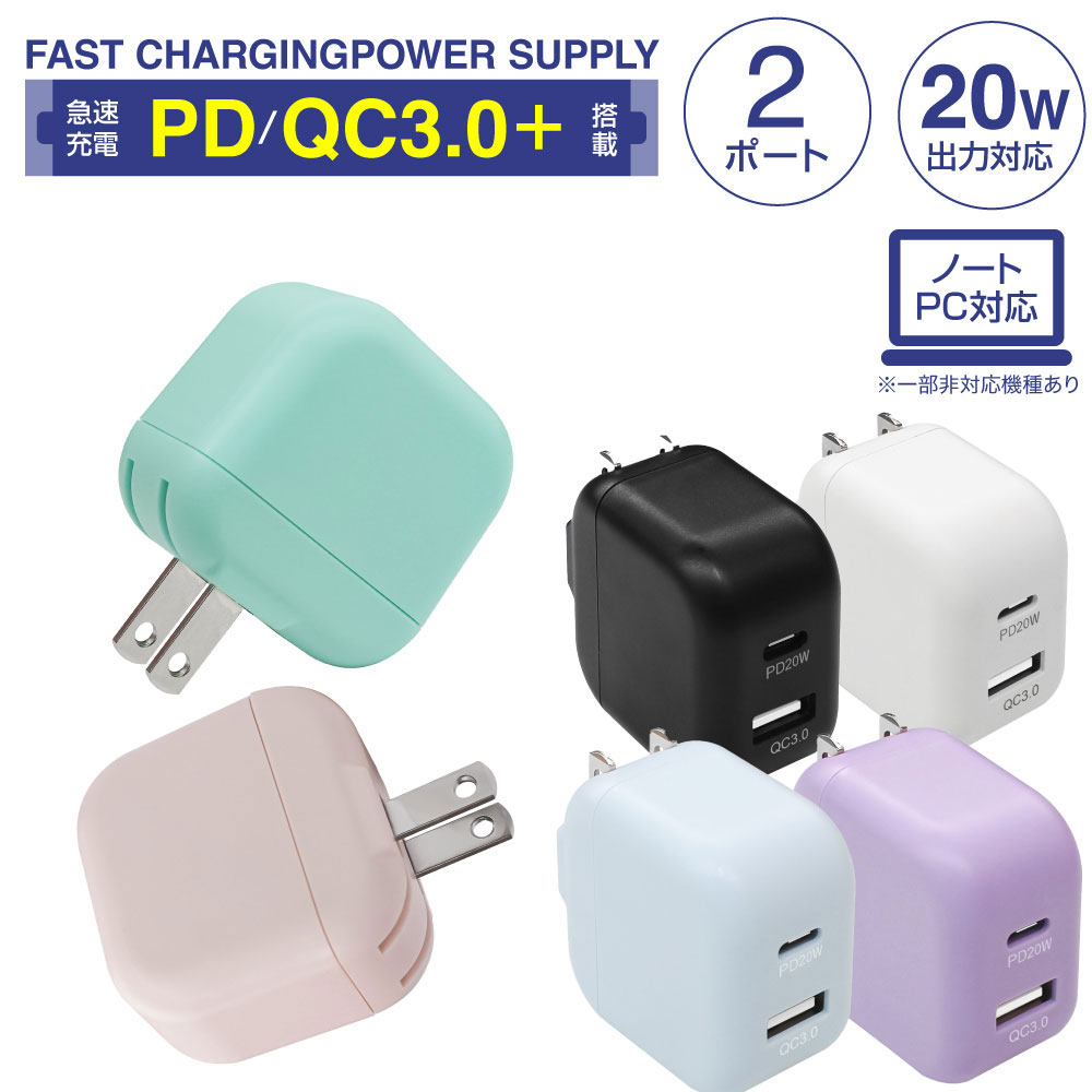 【25%OFFクーポン】20W 急速充電アダプター PD QC3.0 2ポート 充電器 PowerDelivery USB-A タイプC iPhone 10/11/12/1314/15/16/17 MacBook Air Pro Android Googleピクセル Galaxy 同時充電 あいふぉん