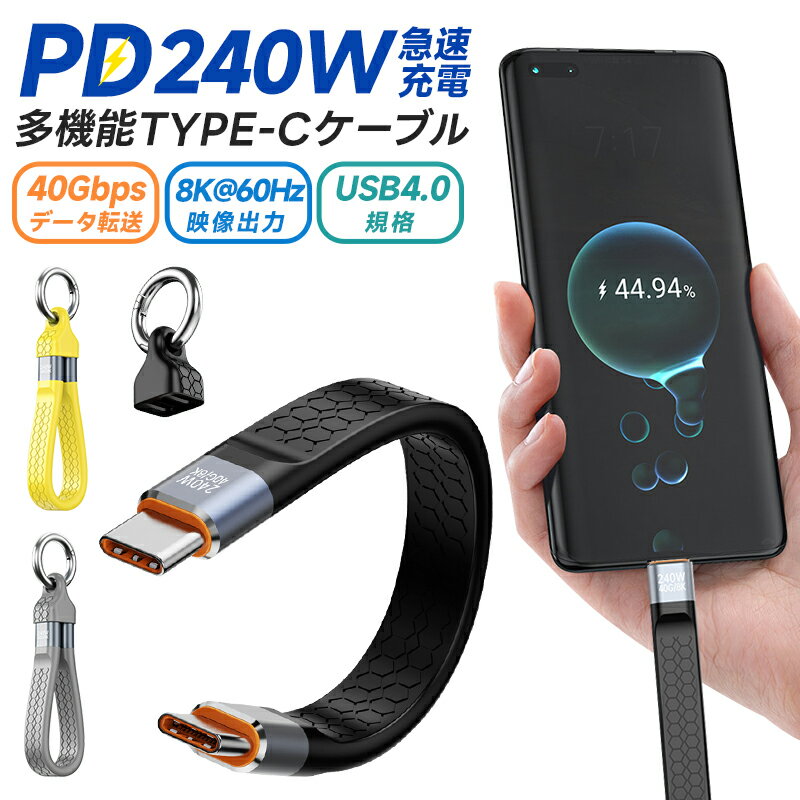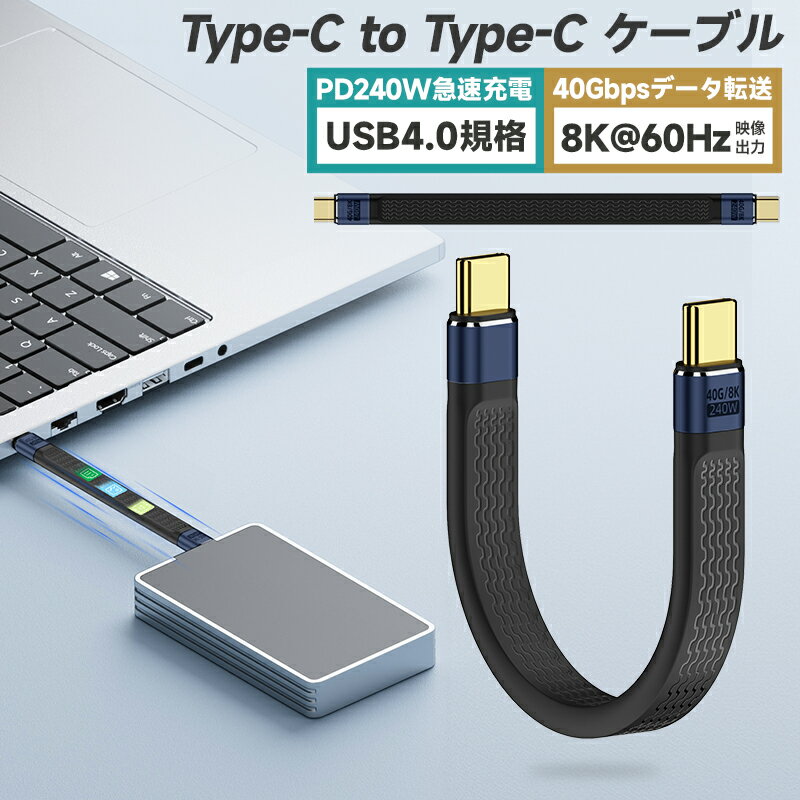 10%OFF 1488→1339円★USB4.0 Type-C to Type-Cケーブル usb-cケーブル 短い Type-Cケーブル Thunderbolt 4対応 PD3.1標準 240W急速充電 8K60Hz 40Gbps USB4対応 高速データ転送 13cm モバイルバッテリー用 ハブ用 for iPhone15/MacBook Pro/iPad Pro/Galaxy S23など