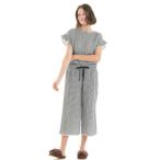 ナルエー Narue シャーリング表ジャガードストライプ&シャンブレーフリルパジャマ (ブラック)
