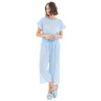 ナルエー Narue シャーリング表ジャガードストライプ&シャンブレーフリルパジャマ (ブルー)