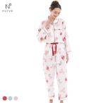 ナルエー パジャマ シュークリームガーゼRフラワーステッチセットアップ ルームウェア ロングパンツ 長袖 上下セット NARUE