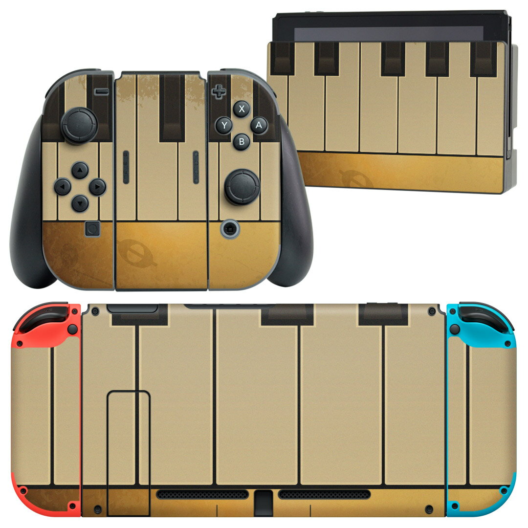 igsticker Nintendo Switch 用 デザインスキンシール 任天堂 ニンテンドー スイッチ 専用 本体ドック Joy-Con Joycon ジョイコン 専用 ゲーム機 カバー アクセサリー フィルム ステッカー 005241 音楽 ピアノ 楽器