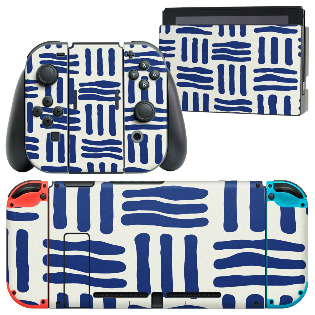 igsticker Nintendo Switch 用 デザインスキンシール 任天堂 ニンテンドー スイッチ 専用 本体ドック Joy-Con Joycon ジョイコン 専用 ゲーム機 カバー アクセサリー フィルム ステッカー 003765 和風 和柄 紺