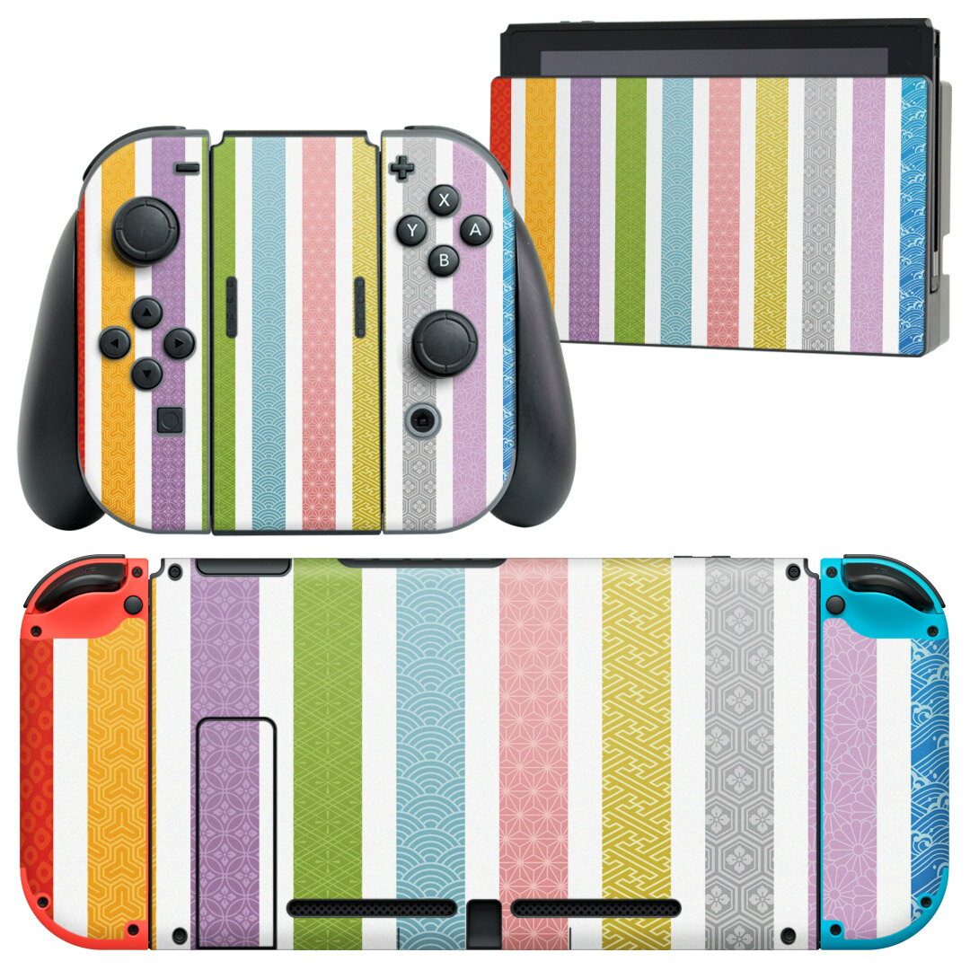 igsticker Nintendo Switch 用 デザインスキンシール 任天堂 ニンテンドー スイッチ 専用 本体ドック Joy-Con Joycon ジョイコン 専用 ゲーム機 カバー アクセサリー フィルム ステッカー 008070 和風 和柄 カラフル 模様