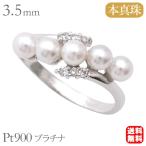 パール リング カジュアル 普段使い プラチナ 真珠リング 指輪 ベビーパール 5コ付リング 真珠 アコヤ あこや 3.5-4mm ダイヤモンド 送料無料 レディース pu