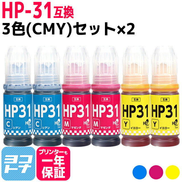 ★月末10%OFFクーポン★【純正品と同容量】 HP31 HP 3色(CMY)×2セット互換インクボトル 内容:HP31C HP31M HP31Y 対応機種:HP Smart Tank 5105HP Smart Tank 5106HP Smart Tank 6005HP Smart Tank 6006HP Smart Tank 7005HP Smart Tank 7305HP Smart Tank 7306