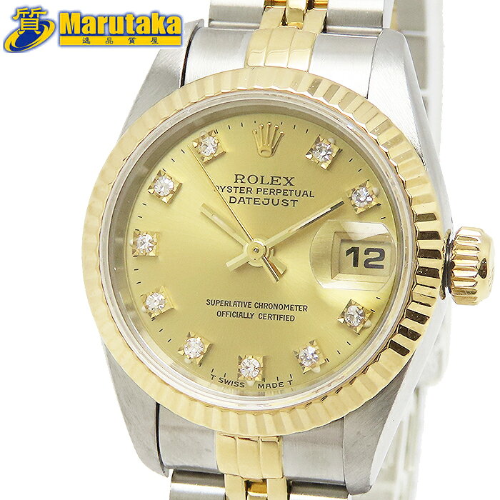 ロレックス 69173G デイトジャスト 1993年 自動巻 S番 レディース SS YG ROLEX DATE JUST シャンパン ゴールド カレンダー コンビ 10PD 逸品質屋 丸高 尼崎市 ダイヤモンド 中古 送料無料 腕時計 兵庫県 女性 Diamond Marutaka USED 婦人 プレゼント ファッション お洒落