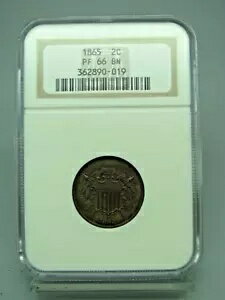 1865 シールド 2 セント NGC PF 66 BN - 発行枚数が非常に少ない!