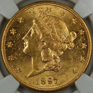 1897-S リバティ 20ドル ダブルイーグル金貨、NGC UNC 詳細(不適切な洗浄)