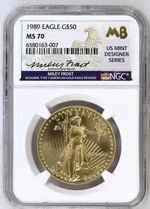 1989年 50ドル 1オンス ゴールドイーグル NGC MS70 マイリー・フロスト直筆サイン入り スーパーローポップ 1/7