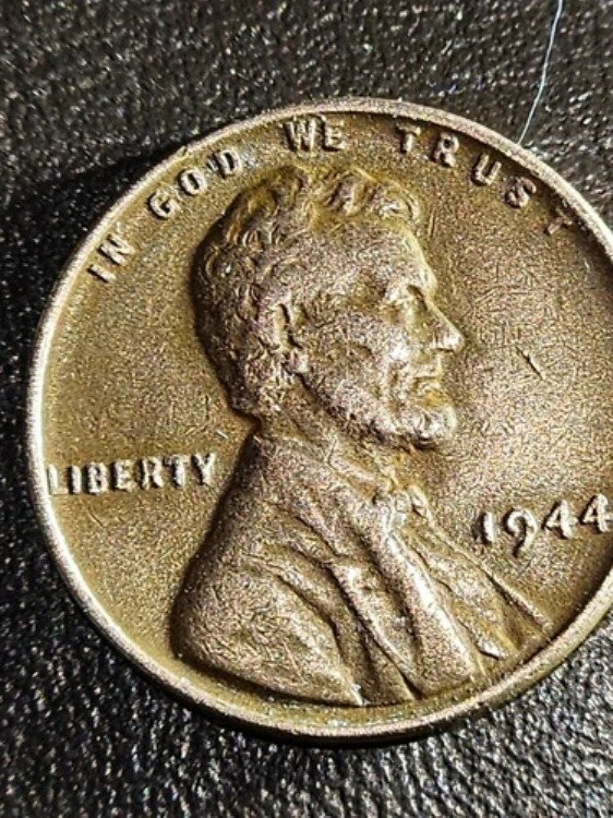 1944年 銅製リンカーン・ウィートペニー ダブルダイ表面(DDO)エラーなし ミントマークなし