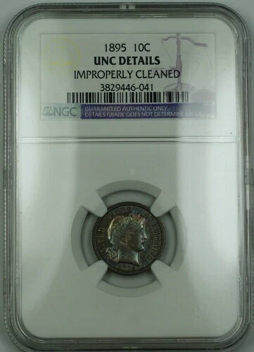 1895年 バーバー シルバーダイム NGC UNC 不適切にクリーニング済み (非常に良質のコイン) トーン RF