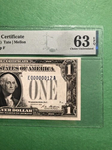 1928年 1ドル銀券 スーパーローラダー 2桁番号 # E00000012A 最高級レア