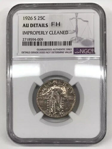 1926-S スタンディングリバティクォーター NGC AU 詳細(不適切なクリーニング)