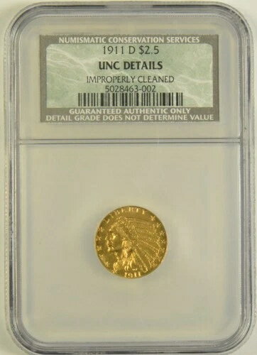 1911-D 2.50ドル インディアンゴールド NCS 未使用 細部のクリーニング不良 強いD