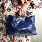バッグ レディース レザー PYTHON×COBRA パイソン ウェーブトートバッグ ブルー 本革 コブラ革 蛇革 洋服 着物 和装 カジュアル モード