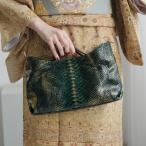 バッグ レディース レザー PYTHON パイソン ウェーブトートバッグ ミニ グリーン 緑 本革 蛇革 コブラ革 ショルダーつき ハンドバッグ お洋服にも 着物にも 和装