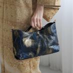 バッグ レディース レザー PYTHON パイソン ウェーブトートバッグ ミニ ネイビー×ゴールド 紺 金 本革 蛇革 コブラ革 ショルダー お洋服にも 着物にも 和装