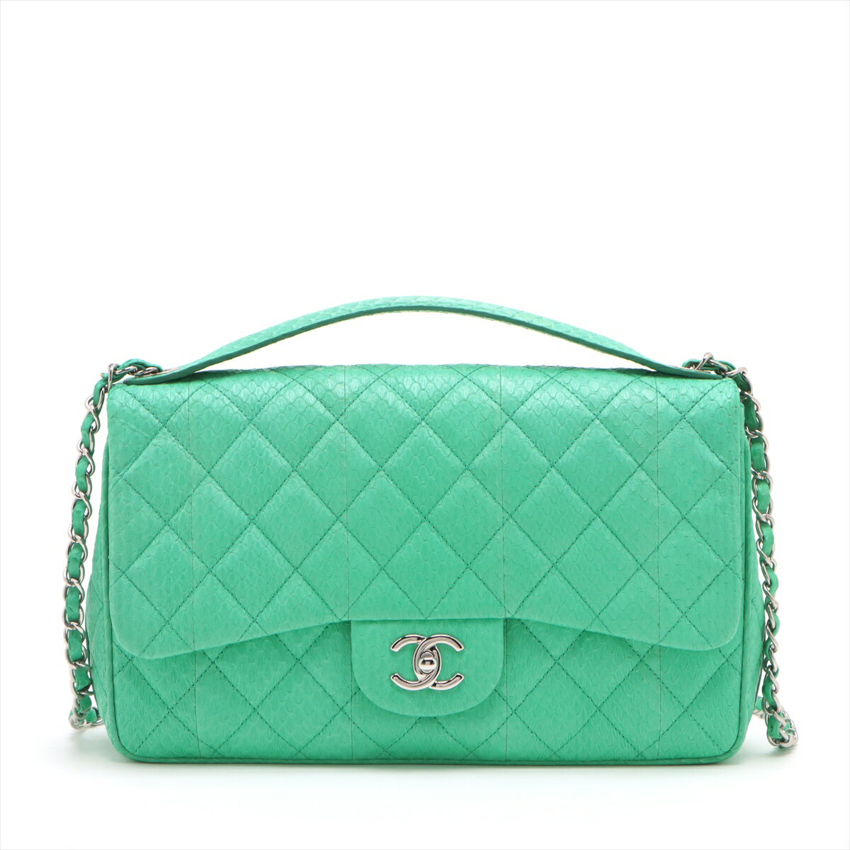 【中古】シャネル マトラッセ パイソン 2WAYショルダーバッグ グリーン シルバー金具 20番台