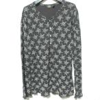 美品 RRL ダブルアールエル ラルフローレン フラワープリント 長袖 ヘンリーネック Tシャツ リブカットソー 3 ブラック レディース 古着 中古