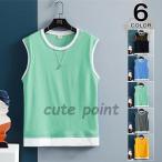 重ね着風 タンクトップ メンズ ノースリーブTシャツ トップス インナー 配いろ スポーツ 夏 6色