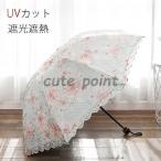 3色!レディース UVカット 花柄 レース 姫系 フリル 日傘 折りたたみ 深張り 遮光遮熱 ロマンティック 裏張り フラワー 折りたたみ傘 シミ シワ紫外線対策