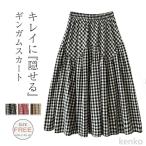 送料無料 ロングスカート レディース スカート ギンガムチェック ボトムス 春 夏 秋 フレア Aライン ウエストゴム フレアスカート チェック柄 ロング丈 薄手