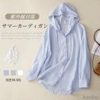 【送料無料】ィガン レディース パーカー トップス 春 夏 フード付き 前開き サマーカーディガン 長袖 綿 麻 無地 UVカット 薄手 羽織り 冷房対策 紫外線カット