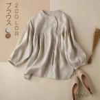 リネンブラウス 9分袖 ブラウス 綿麻 シャツ スタンドカラー 前開き 綿麻ブラウス リネンシャツ トップス ナチュラル キレイめ