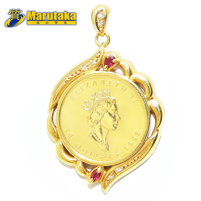メイプルリーフ コイン ルビー ダイヤモンド ペンダントトップ 1/4oz 1995 K24 K18 0.04ct 0.21ct 999.9 $10 ドル エリザベス イエローゴールド 13.5g 逸品質屋 丸高 尼崎市 Canadian Gold Maple Leaf YG Yellow Gold Coin or pur FINE GOLD Ruby Diamond Pendant Top