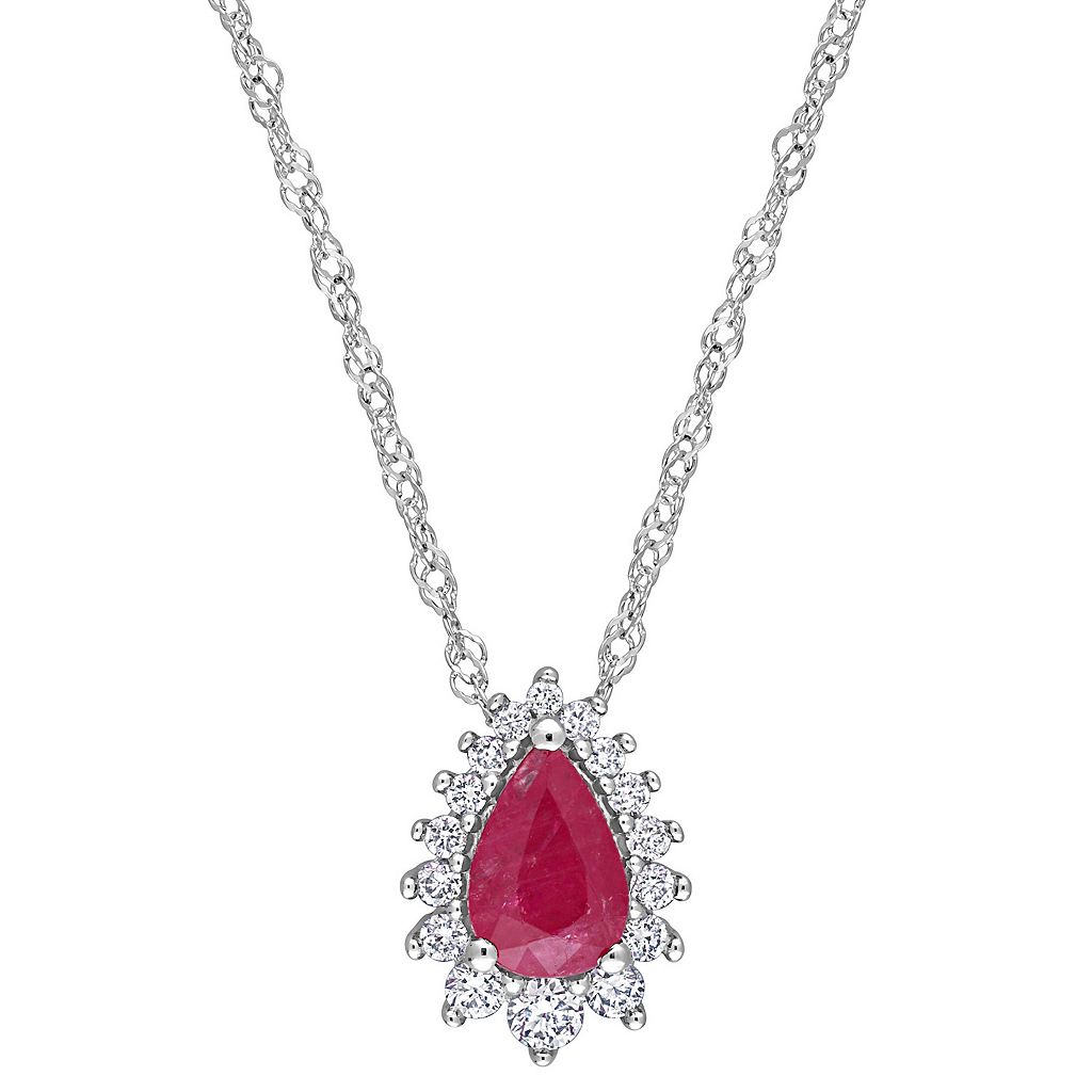 白色 ホワイト ゴールド ダイヤモンド ネックレス & T.W. 【 STELLA GRACE 14K WHITE GOLD RUBY 1/8 CARAT DIAMOND TEARDROP PENDANT NECKLACE / 14K WHITE GOLD 】 ジュエリー アクセサリー レディースジュエリー ペンダン