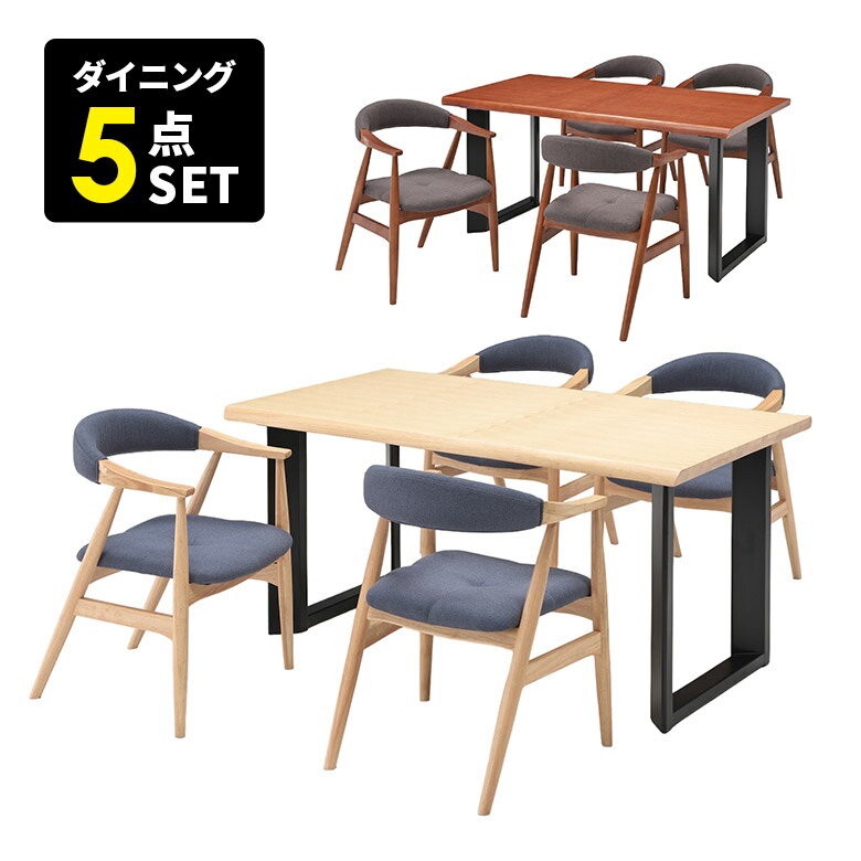 【全商品に使える2%offクーポンあり!!】 ダイニングテーブルセット 4人掛け 5点セット 北欧 モダン シンプル 150cm 一枚板風 耳付き風 ダイニングチェア 4脚セット 肘付き 木製 ダイニングテーブルセット 4人 ひじ掛け付き ファブリック ナチュラル ブラウン