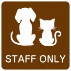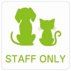 動物イラスト付 STAFF ONLY ホワイト ブラック グリーン ブラウン 27x27cm 正方形 サインステッカー シール 屋外 屋内 防水 おしゃれ 動物病院 老犬ホーム 犬 猫 ネコ ドッグラン 動物園 ペットショップ ペット マナー お願い 獣医